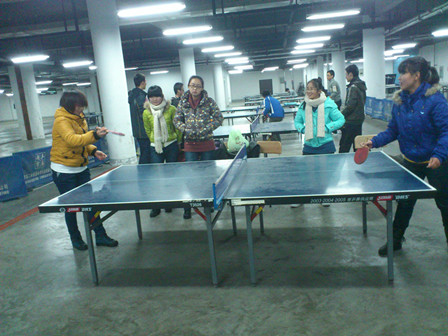 下午,天空飘起了雪花,但这丝毫没有减弱同学们参加乒乓球活动的热情。两点整,同学们齐聚乒乓球馆,进行比赛。虽说是比赛,但并不是真正的比赛。这次活动的目的并不是决出名次、一争高低,而是让同学们都能参与到打乒乓球的过程中,并从中体验乒乓球运动带来的快乐。有的同学可能是初次接触乒乓球,打起球来并不是十分得心应手,但经过一定的指导后,能够掌握初步的乒乓球技术。有一定乒乓球基础的同学,他们有的指导新手们打球,有的一起打友谊赛,互相切磋球技。下旋球、摆短、正手挑球、扣杀……脚步有序,动作紧凑有力,比赛显得十分精彩。本次活动一直持续到下午4点,但仍有部分同学不舍得离开。