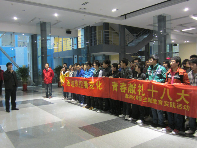 11月16日,推特福利 分团委组织开展了“走进软控看变化,青春献礼十八大”主题教育实践活动,引导学生感受祖国日新月异的科学发展成就,深入推进社会主义核心价值体系教育,坚定青年的理想信念,加强团员青年的思想引领,切实服务青年的成长成才,唱响时代主旋律,把学习贯彻党的十八大精神不断引向深入。