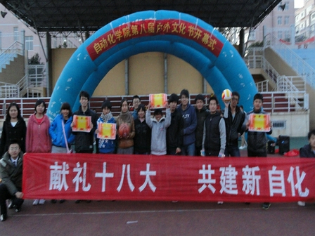 “永远跟党走,成才报祖国”第八届户外文化节于2012年11月13日在崂山校区操场隆重举行。出席本届文化节的嘉宾有分团委副书记兼学工办副主任刘兆鹏、第九届学生会秘书长张敏、第九届学生会主席王晓军。