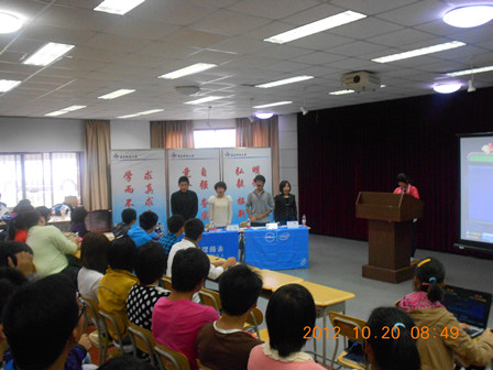 12级辩论赛决赛在崂山校区大学生活动中心开赛。到场的有自化122班和测控123班的八位辩手以及学院辩论团的评委以及到场的观众。