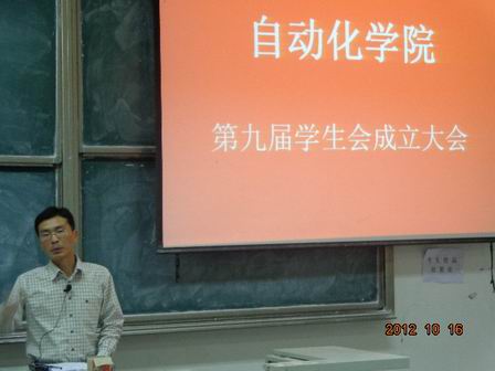 会议分为三大部分共七项,可以概括为对过去的肯定与总结,对未来的展望,老师的希冀。第一项对第八届优秀学生会干部,十佳学生会干事颁发荣誉证书,第二项第八届学生会主席对上一届工作进行工作总结,接下来是校学生会主席宣读校学生会关于同意我院第九届学生会成立的批文。肖强老师为第九届学生会秘书长刘兆鹏老师颁发了聘书,第九届学生正式成立。新一届学生会主席王晓军同学对接下来的工作做出规划,并指出进一步完善学生会的职能,对日后的工作表达自己的想法,最后刘兆鹏老师和肖强老师分别做出讲话,他们肯定了第八届学生会作出的成果及取得的成绩,并表达出对第九届学生会成员深厚寄望。肖强老师提出了四点希望和要求,一是坚定信念,不断提高思想政治素质;二是勤奋进取,努力学习业务知识;三是开拓创新,全力打造活动品牌;四是讲究方法,处理好各方面关系。希望通过大家的努力,克服跨校区工作的困难,抓好学习这一学生的天职,为学院的学生工作做出更大的贡献。
