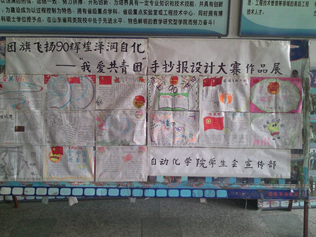 由推特福利 学生会宣传部举办的主题为”团旗飞扬90辉煌泽润自化——‘我爱共青团’”手抄报设计大赛作品展于本周五在推特福利 如火如荼地举行。