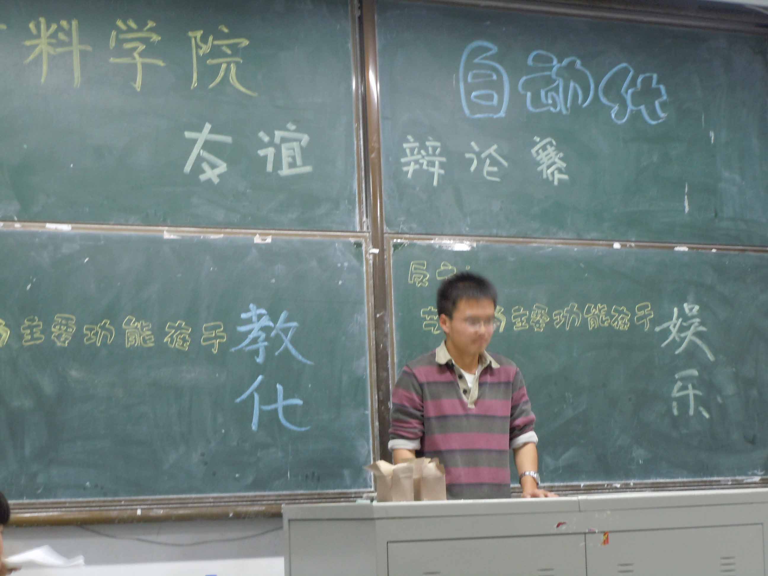 演讲与口才协会会长王子豪担任主持,正方材料学院的辩题是艺术的主要功能是教化,反方推特福利