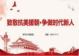 主题活动期间,为铭记历史,缅怀先烈,发扬伟大的爱国主义精神和革命英雄主义精神,认真学习贯彻习近平总书记在纪念中国人民志愿军抗美援朝出国作战70周年大会上重要讲话精神,在青少年中广泛开展爱国主义和革命英雄主义教育,继承和弘扬伟大的抗美援朝精神和民族精神,电气201团支部开展“致敬抗美援朝,争做时代新人”主题活动。