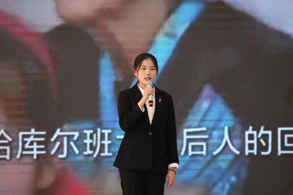 我院学生自化211班郝岩通过讲述彰显民族团结的感人故事,表述民族团结一家亲是当今时代发展的主旋律。深情呼吁青年学子响应习近平总书记号召,像爱护自己的眼睛一样爱护民族团结,珍视自己的生命一样珍视民族团结,各民族像石榴籽一样紧紧抱在一起。立足新时代,慷慨激昂地发出青春誓言:“我们生逢盛世,当不负盛世!”