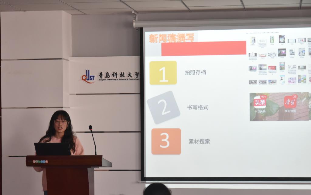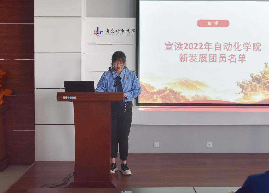 青岛科技大学卓越团支部、自化中法191班团支书赵雅萍为在场所有团员分享成长体会,交流建设特色团支部的工作经验,她表示,作为团员要担负起应有的责任,积极与同学们交流沟通,完成好团组织交予的工作,为建设独具特色的团支部贡献一份力量。
