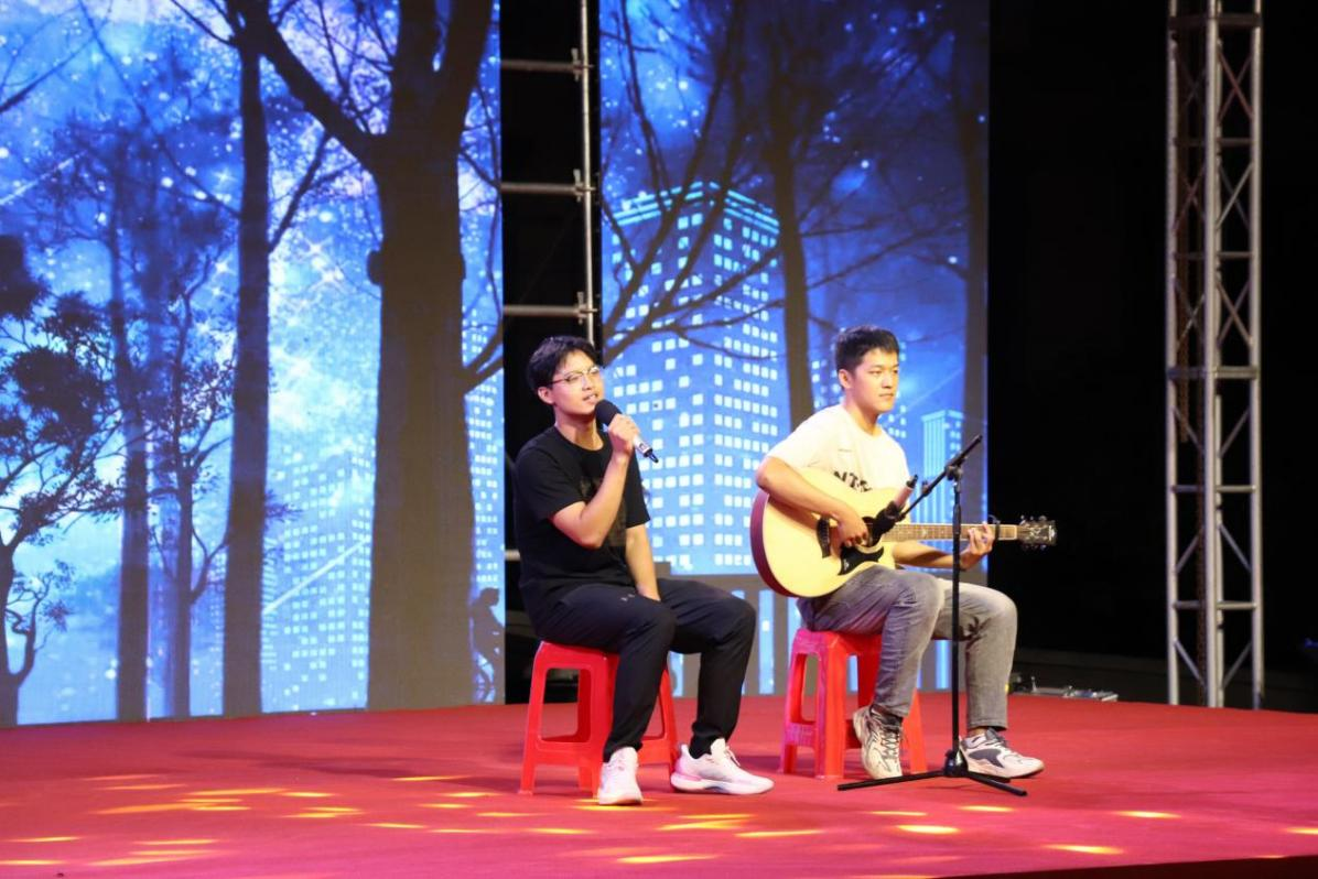 一歌一曲唱响时代风采,一姿一舞展现幸福安康。学院本科生崔淳、孙毅的一曲《朋友》让听众们坠入友谊的甜蜜,侯熠和王文钊凭一把吉他展露出一座富有浪漫气息的《成都》回忆。高梓迅、胡小璐、王晨熹同学合唱《水从天上来》良辰、星河、挚爱,让听众沉沦其中。