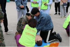 林慧艳主任对“白金十分钟项目”进行了详细的介绍,她表示近年来高校心源性猝死案例多发,每个人都应该掌握好急救知识。张丰铎副主任向同学们讲解了心肺复苏的正确操作方法以及注意事项,并演示了自动体外除颤器(AED)的使用。顾晓峰副主任向与会者讲解了海姆立克法急救法的正确姿势,并强调了其中的注意事项。