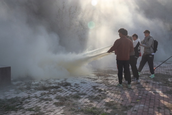 消防安全作为宿舍安全管理的重中之重,事关每一位学生自身生命安全,消防演练也是每一位“自”家人必修的“安全实践课”。活动中,赵淑东通过“理论巩固+实践操作”的生动形式,向同学们详细普及了消防安全知识,讲解了消防演练重点,教授了灭火器的使用等实用技能,在实操中检验和提高学生们的火灾应急反应能力,增强学生安全意识,敲响消防安全的警钟,筑牢“AI平安”坚实安全防线。