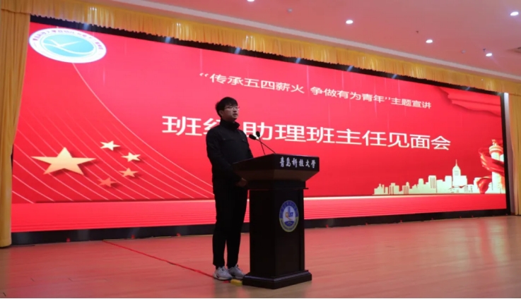 于崂山校区第二报告厅举办“传承五四星火 争做有为青年”五四宣讲教育大会暨优秀学团干部颁奖大会,学生工作处教育管理科科长郭蒙蒙、推特福利
