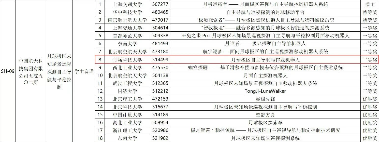 的项目《月球极区自主导航与作业机器人》在2025年度中国青年科技创新“揭榜挂帅”擂台赛“人工智能领域”主擂台赛中,从众多一流高校中突出重围,最终以全国第八名的优异成绩斩获国家二等奖。