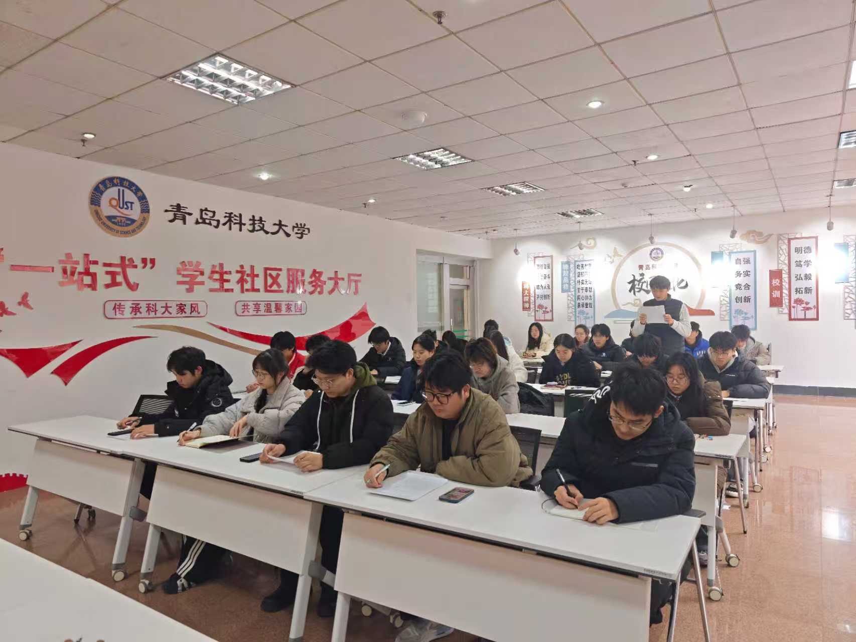 于崂山校区一站式学生公寓召开学生会骨干座谈会。学院党委副书记兼副院长刘名森,学院团委副书记兼学工办副主任张郁浩,学生会主席团成员及部门负责人参加本次会议。会议由23级辅导员刘志飞主持。