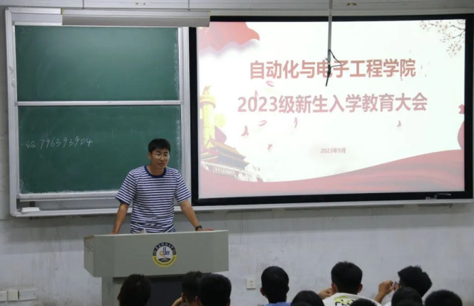 随后刘志飞从大学生活、大学学习、大学规划等方面给同学们进行了详细的讲解,以生动的案例分析和故事叙述让同学们对大学有了更进一步的了解。面向2023级全体学子,他重点从三方面提出了期望和要求:一是树立良好的科研学术风气。学如逆水行舟,不进则退。希望同学们在未来的四年里能够专心学习、潜心研究、积极进取、锐意创新,让自己的梦想在大学得以开花结果,让自己的青春在大学中渲染出最绚丽的色彩;二是大学是同学们进入社会的过渡期,同学们要尽快适应大学新环境,养成良好的生活习惯,熟悉专业培养计划,制定明确的学习目标。最后,期望同学们在大学收获知识的同时,能够认识一帮志同道合的朋友,学习一些工作必备的技能,为未来的道路打下坚实的基础,为自己的梦想绘制最美丽的拼图。