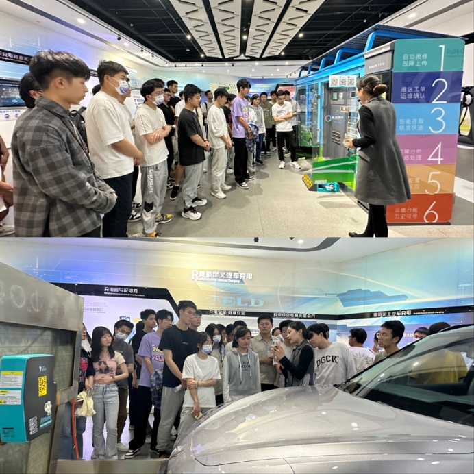 最后,学院前往特来电新能源股份有限公司参观中国新能源生态科技馆,现场体验了特来电在新能源领域的探索,加强对以电动汽车为载体实现能源互联和双向流动的理解。