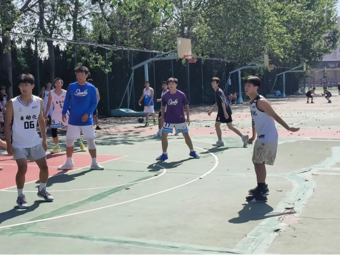在南苑篮球场举办“青春不散 运动不息”篮球友谊赛。