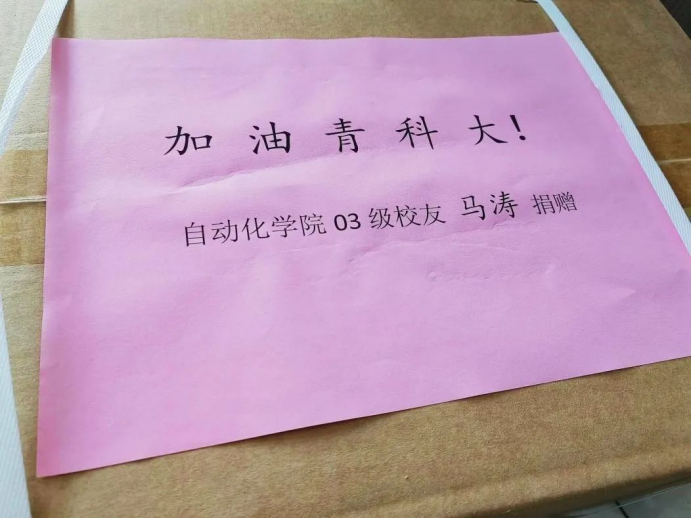 03级校友马涛在得知青岛疫情防控升级后,主动与母校联系,了解母校防疫物资需求,提出要为母校坚守在抗疫一线的师生捐赠一批抗疫物资。