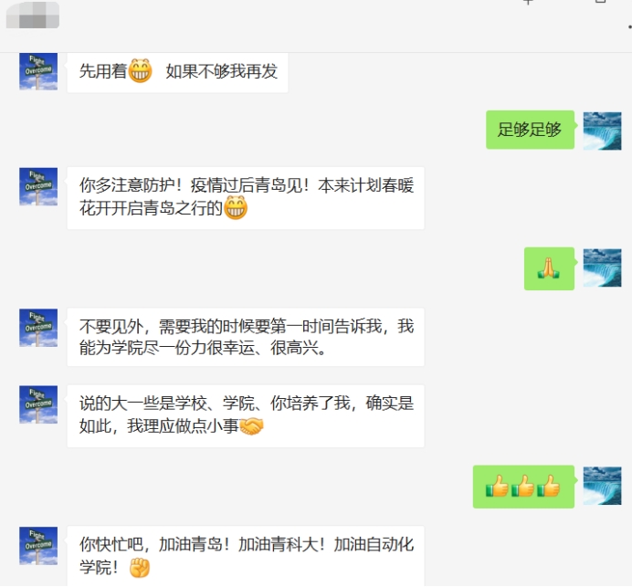 守望中满是牵挂,相助中汇聚力量。在这段特殊的日子里,大家心与心相连,爱与感动常在。这些情系母校、关爱师生、无私奉献的校友,用实际行动诠释了“一方有难、八方支援”的家国情怀。我们坚信,在学校党委的正确领导下,在广大校友和社会各界人士的大力支持下,全体师生众志成城,奋力抗“疫”,一定能够打赢这场疫情防控阻击战!