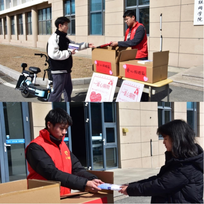 楼门口及北七、南一宿舍楼下均设有爱心捐赠箱,对捐赠物品进行暂时存放。后续所有捐赠的物品将集中消毒,书籍和文具将对接“希望小屋”用于开展关爱困境儿童等特殊群体的志愿服务,干净衣物将通过白鲸鱼捐赠平台代为转赠给有需要的人。